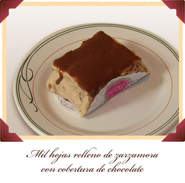 Mil hojas relleno zarzamora con cobertura de chocolate