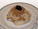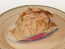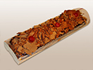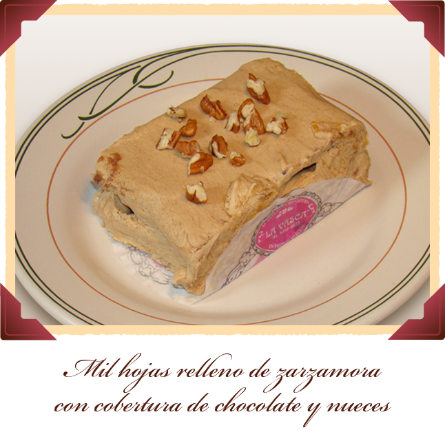 Mil hojas relleno de zarzamora con cobertura de chocolate y nueces